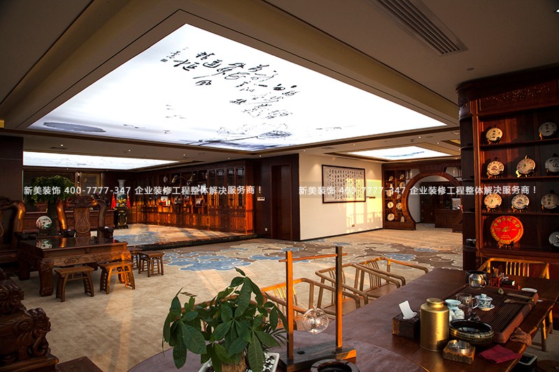 莊嚴(yán)穩(wěn)重的前廳背景用自然的木調(diào)、大理石的辦公臺、金色的公司名、特別造型的吊頂,傳統(tǒng)與現(xiàn)代風(fēng)格的碰撞。體現(xiàn)的正是公司的深厚文化底蘊。